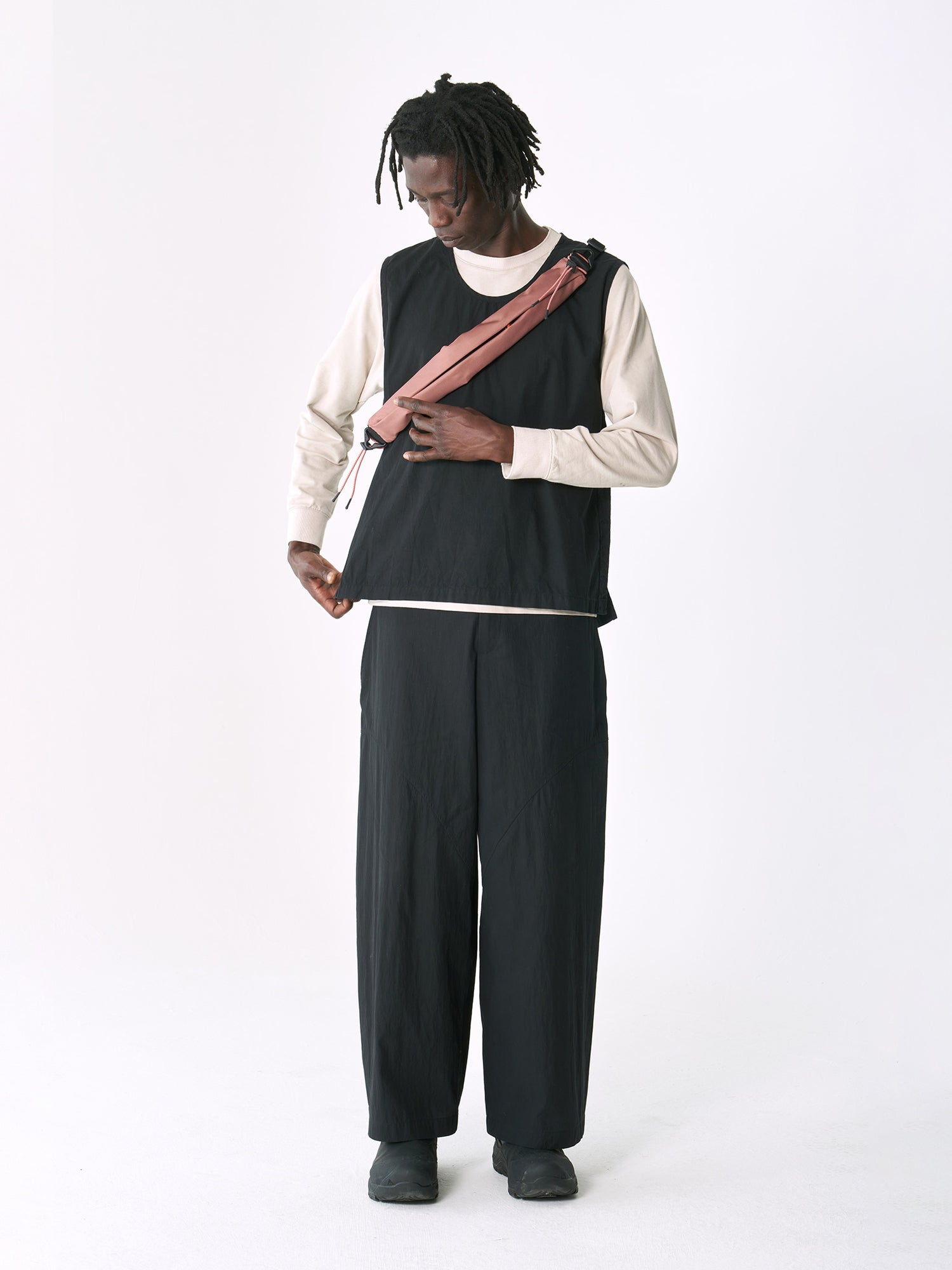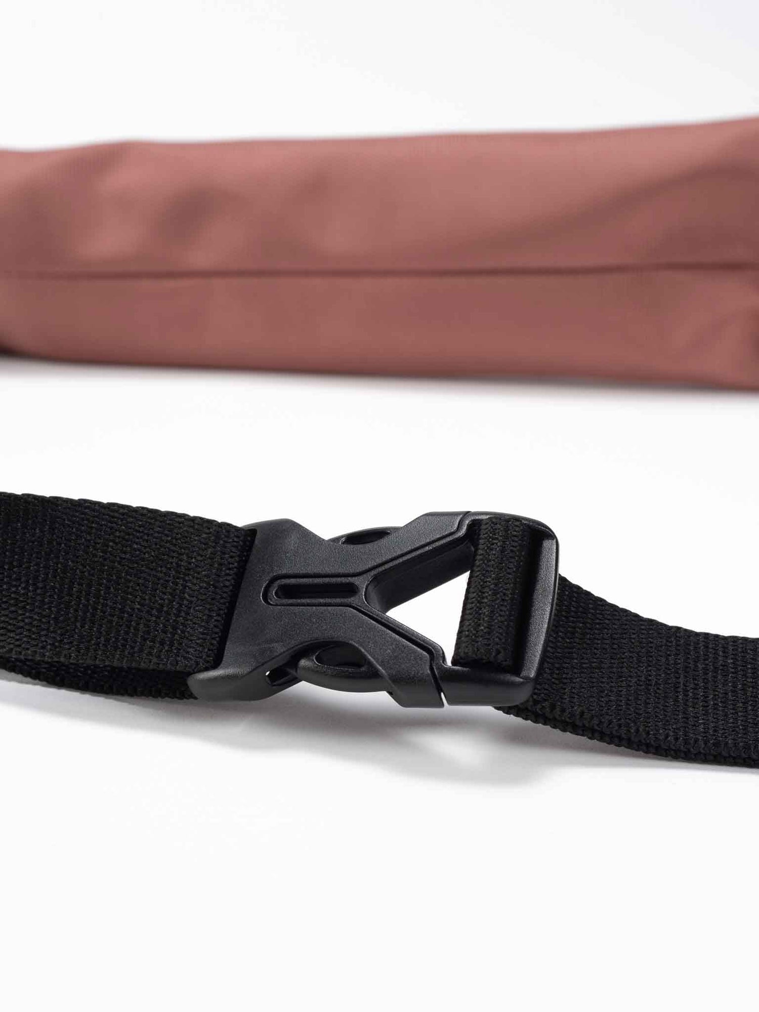 This zippered shoulder strap can be worn on its own either as a minimal crossbody bag or around the waist. It features one main pocket that follows the contour of the bag, and is sealed using a zipper. This iteration of the ADDA features a black clip whereby petite accessories can be attached onto, like car keys. On the inside, a black O-ring is attached to an orange cord.