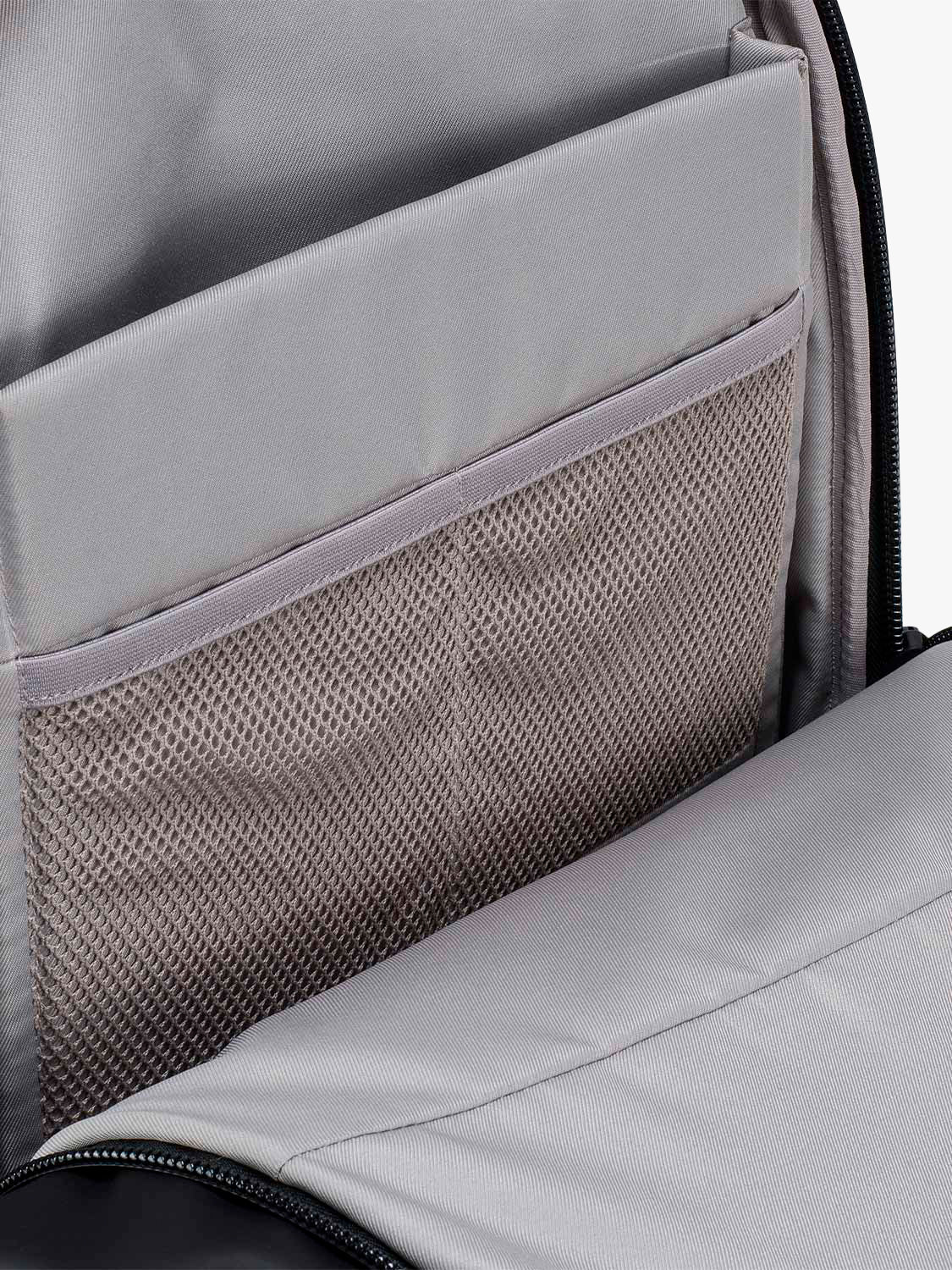 The body of the Nile Obsidian is made from a water-repellent coated polyester with a tactile rubberized finish complemented by breathable mesh lined straps and back panel. The interior of the rucksack has a subdued grey lining.